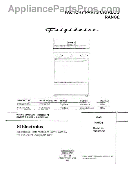 Parts for Frigidaire FGF335CGTJ: 01 - Cover Parts