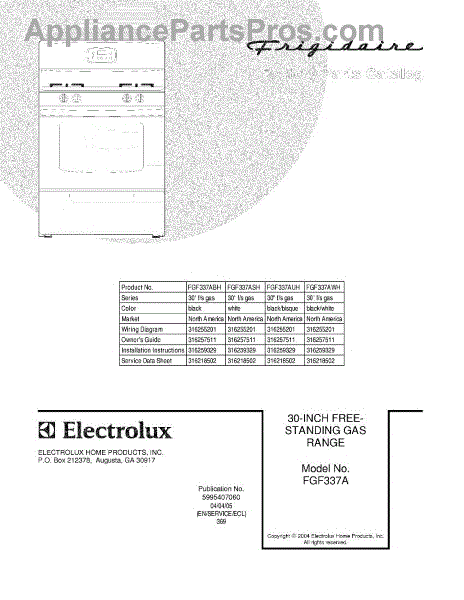 Parts for Frigidaire FGF337AWH: 01 - Cover Parts