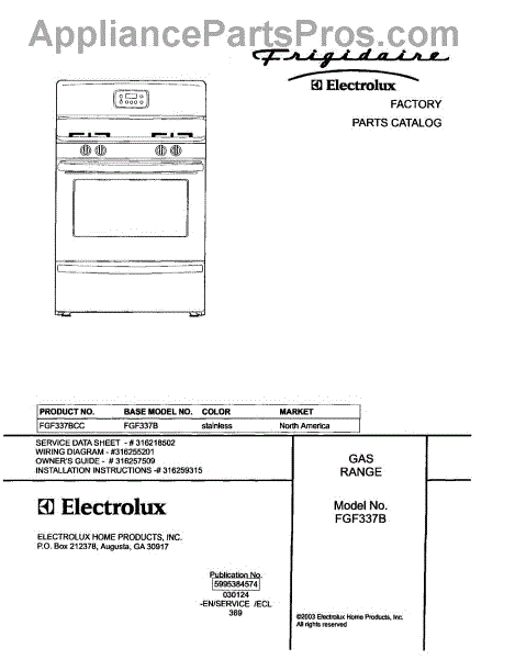 Parts for Frigidaire FGF337BCC: 01 - Cover Parts
