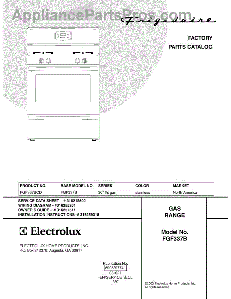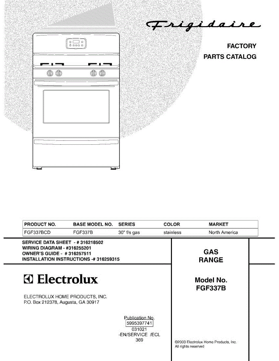 Parts for Frigidaire FGF337BCD: 01 - Cover Parts