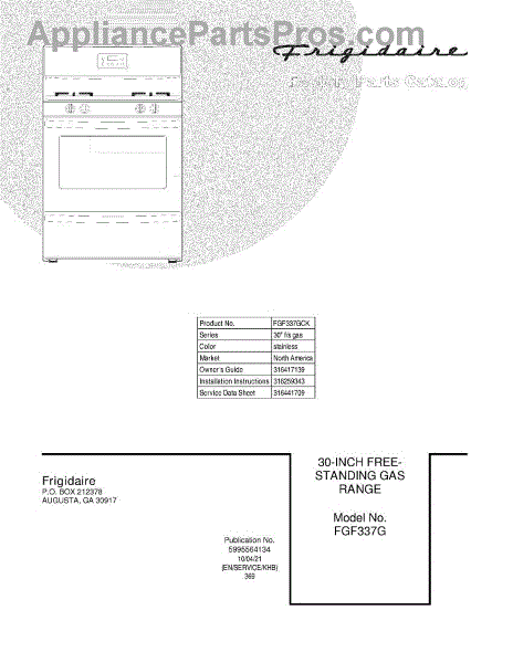 Parts for Frigidaire FGF337GCK: 01 - Cover Parts