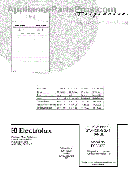 Parts for Frigidaire FGF337GSA: 01 - Cover Parts