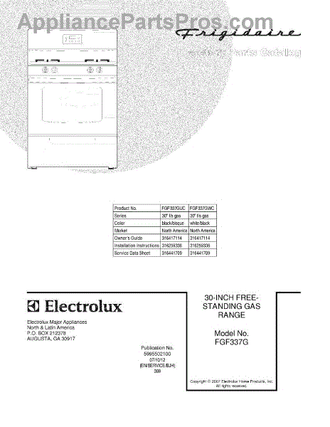Parts for Frigidaire FGF337GUC: 01 - Cover Parts