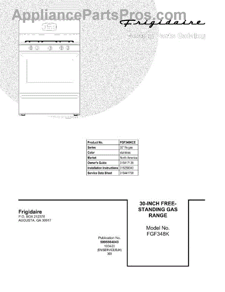 Parts for Frigidaire FGF348KCE: 01 - Cover Parts