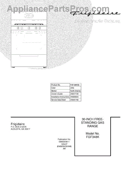 Parts for Frigidaire FGF348KSE: 01 - Cover Parts