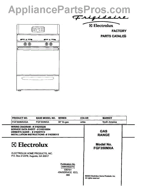 Parts for Frigidaire FGF350MXASA: 01 - Cover Parts