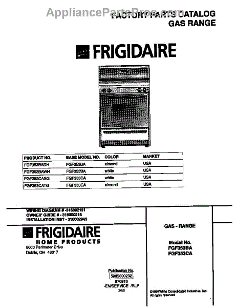 Parts for Frigidaire FGF353BADH: 01 - Cover Parts