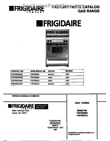 Parts for Frigidaire FGF353CATE: 01 - Cover Parts