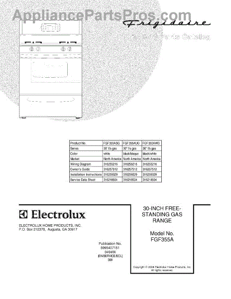 Parts for Frigidaire FGF355ASG: 01 - Cover Parts