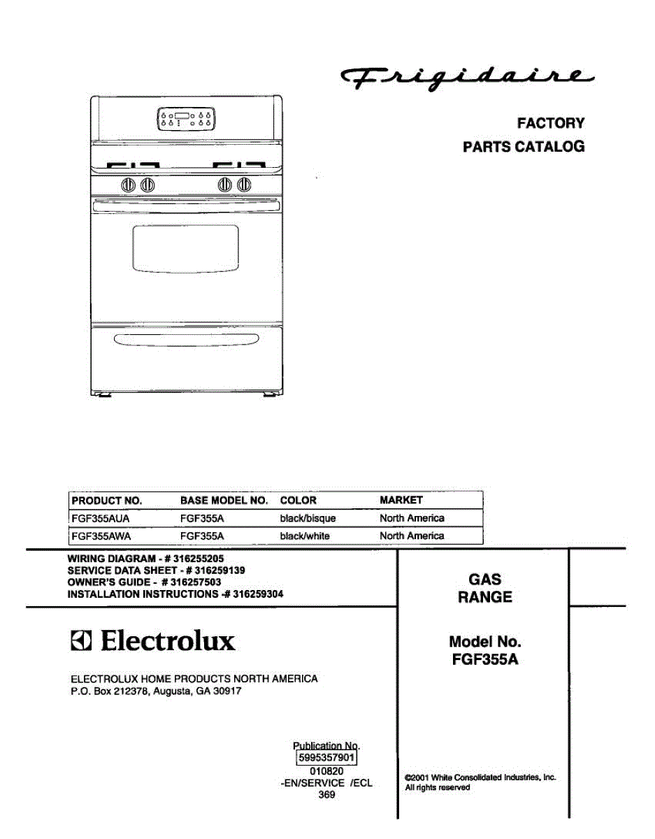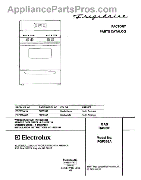 Parts for Frigidaire FGF355AUA: 01 - Cover Parts