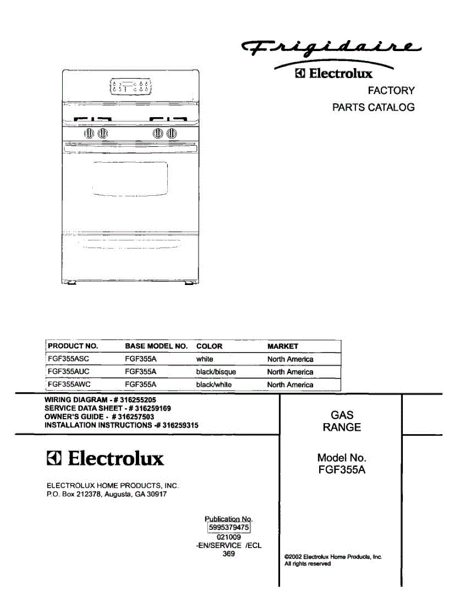 Parts for Frigidaire FGF355AUC: 01 - Cover Parts