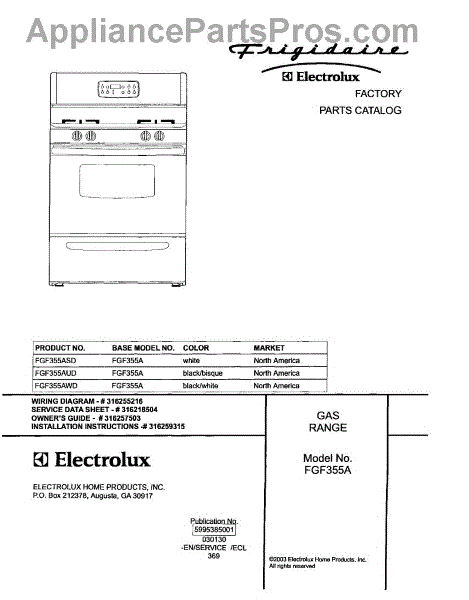Parts for Frigidaire FGF355AUD: 01 - Cover Parts