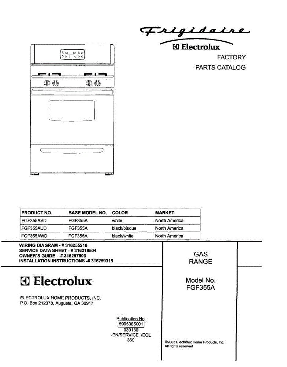 Parts for Frigidaire FGF355AWD: 01 - Cover Parts