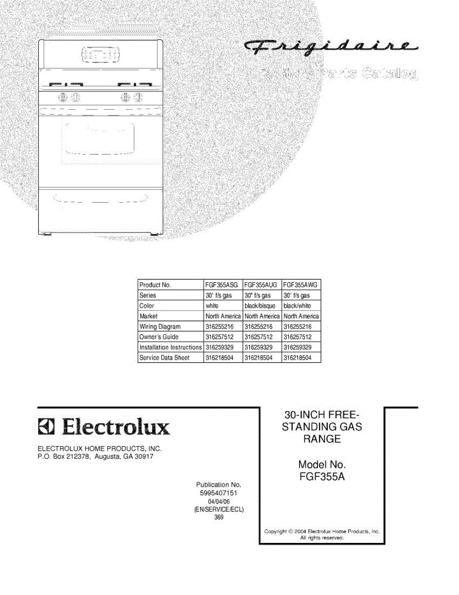 Parts for Frigidaire FGF355AWG: 01 - Cover Parts
