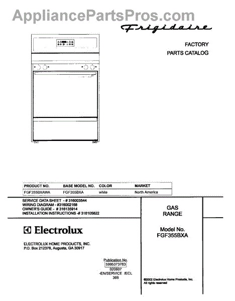 Parts for Frigidaire FGF355BXAWA: 01 - Cover Parts