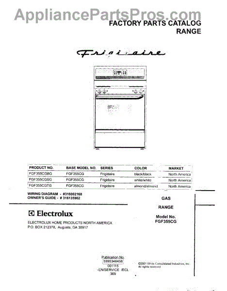 Parts for Frigidaire FGF355CGTG: 01 - Cover Parts