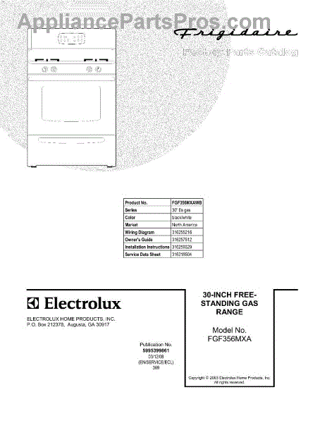 Parts for Frigidaire FGF356MXAWB: 01 - Cover Parts