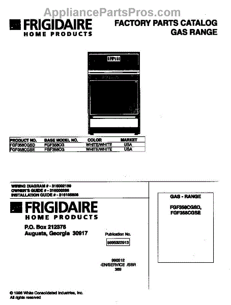 Parts for Frigidaire FGF358CGSE: 01 - Cover Parts