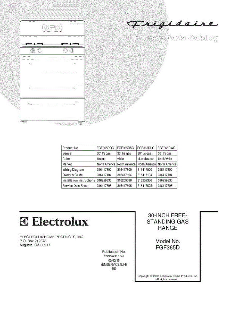 Parts for Frigidaire FGF365DUC: 01 - Cover Parts