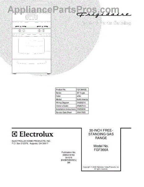 Parts for Frigidaire FGF366ASE: 01 - Cover Parts