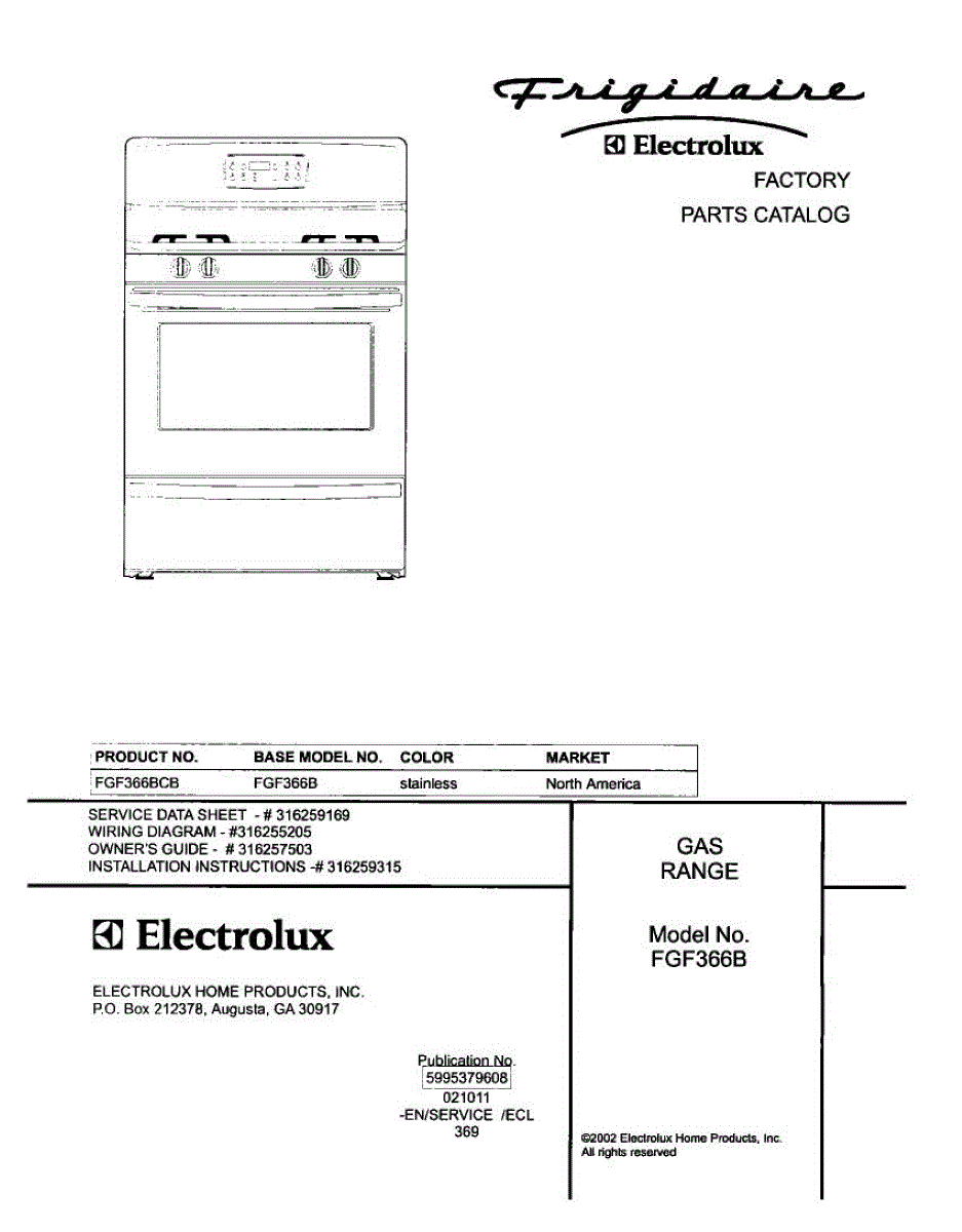 Parts for Frigidaire FGF366BCB: 01 - Cover Parts