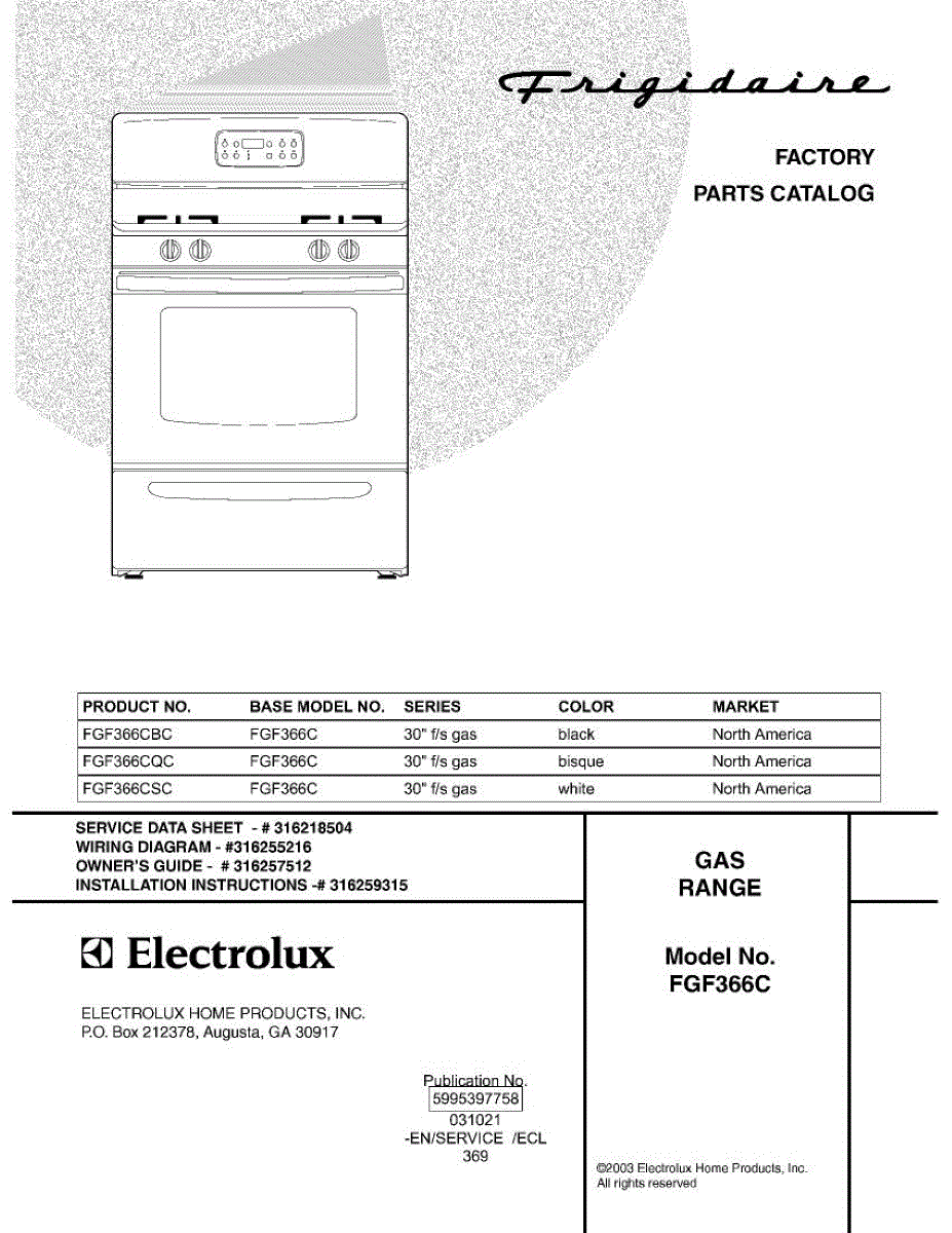Parts for Frigidaire FGF366CBC: 01 - Cover Parts