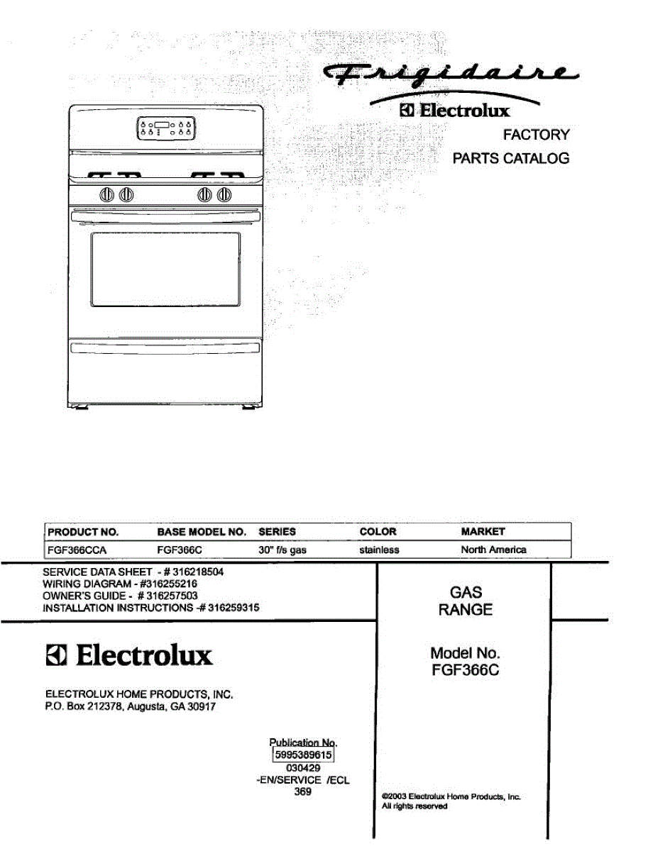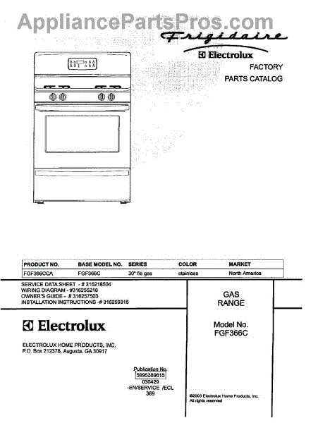 Parts for Frigidaire FGF366CCA: 01 - Cover Parts