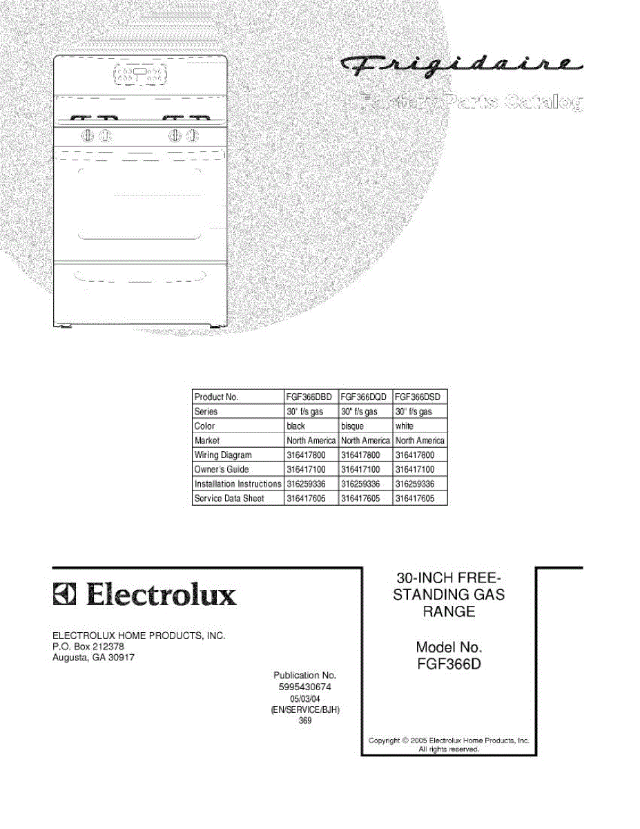 Parts for Frigidaire FGF366DBD: 01 - Cover Parts