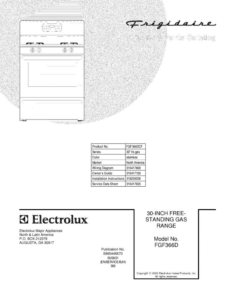 Parts for Frigidaire FGF366DCF: 01 - Cover Parts