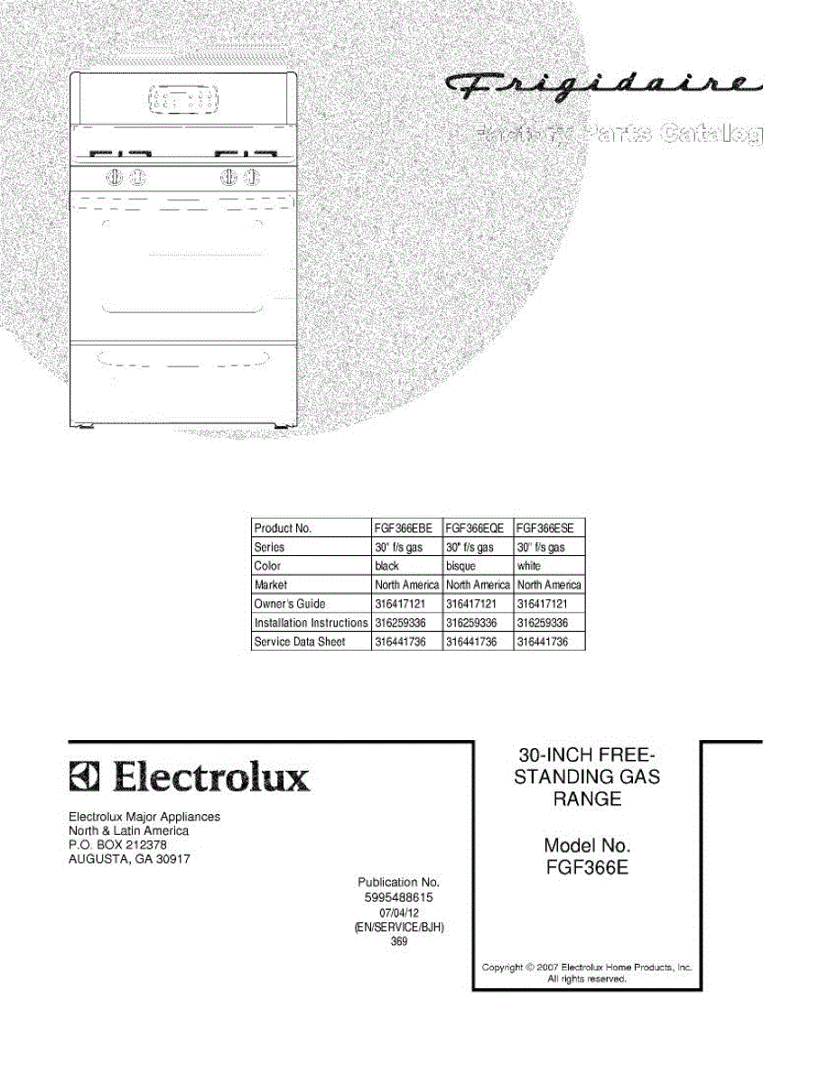 Parts for Frigidaire FGF366EQE: 01 - Cover Parts