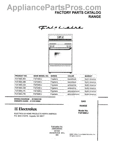 Parts for Frigidaire FGF368CJTB: 01 - Cover Parts