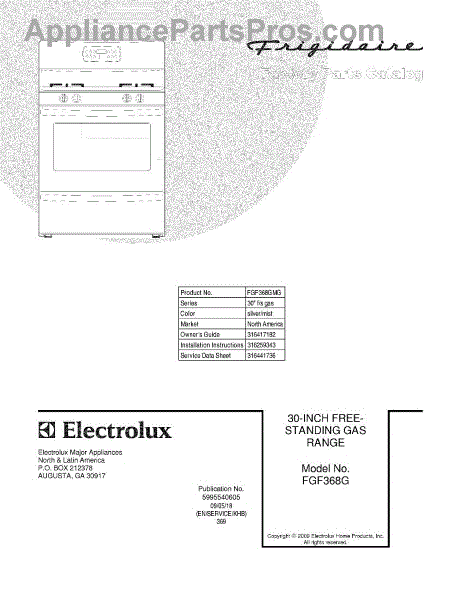 Parts for Frigidaire FGF368GMG: 01 - Cover Parts