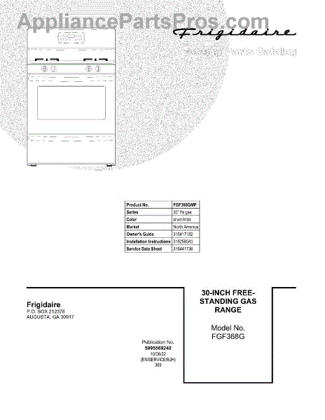 Parts for Frigidaire FGF368GMP: 01 - Cover Parts