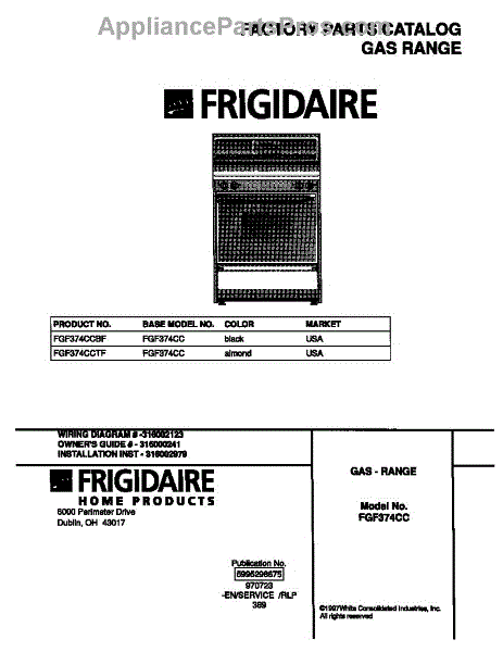 Parts for Frigidaire FGF374CCBF: 01 - Cover Parts