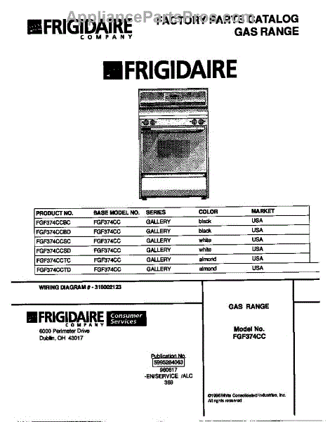 Parts for Frigidaire FGF374CCSD: 01 - Cover Parts