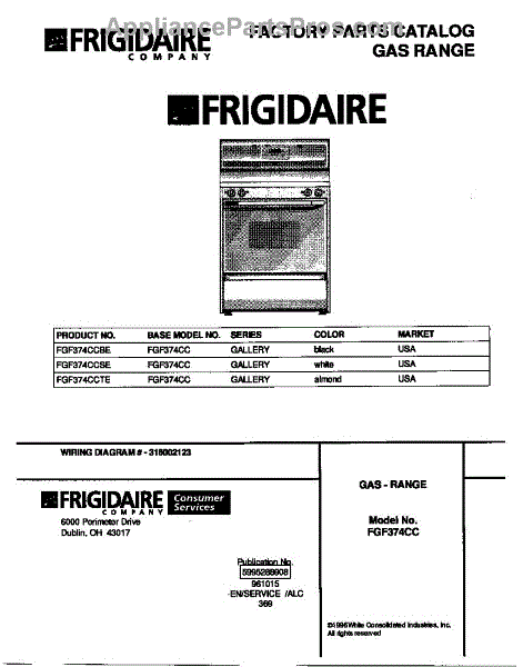 Parts for Frigidaire FGF374CCSE: 01 - Cover Parts