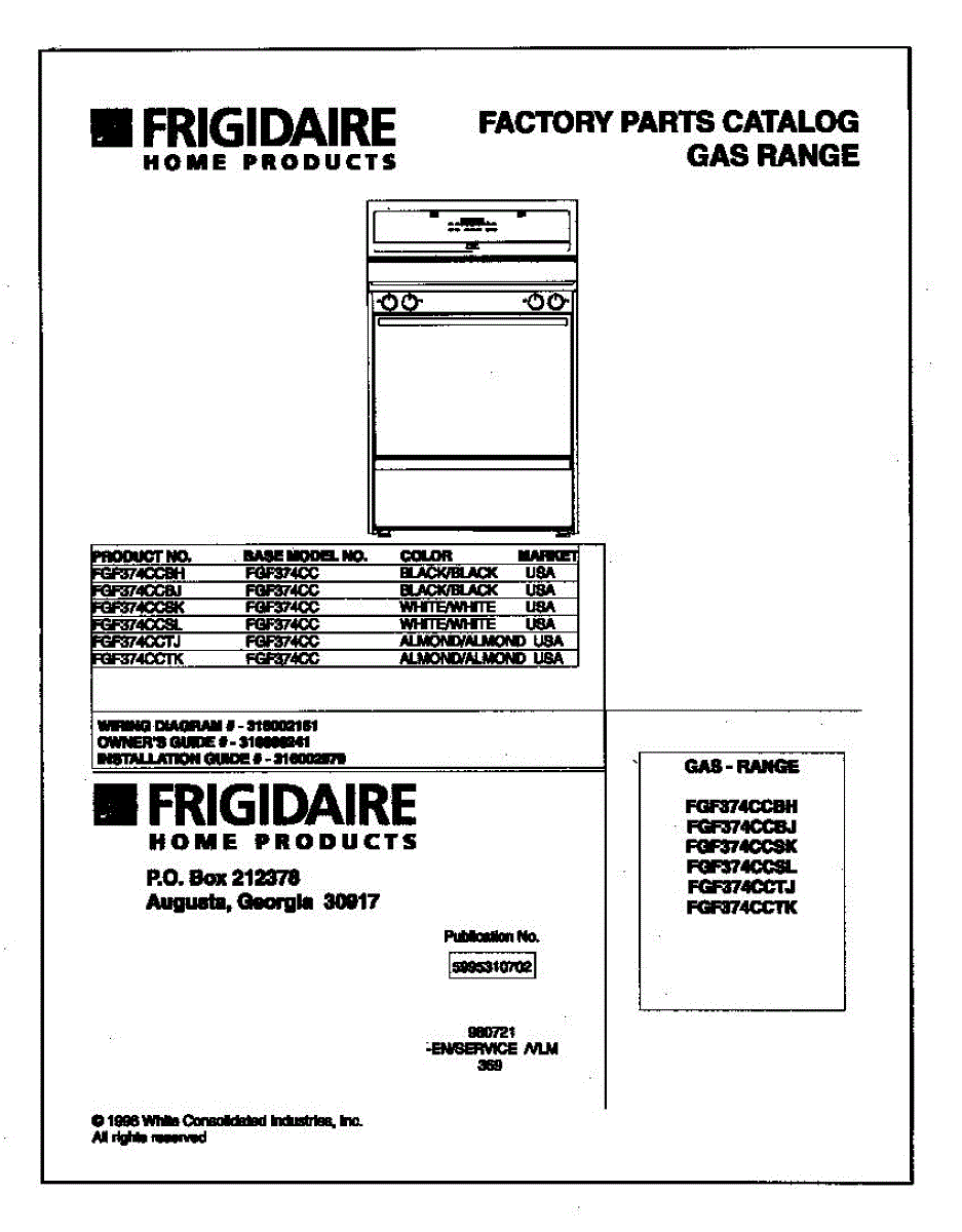 Parts for Frigidaire FGF374CCSK: 01 - Cover Parts