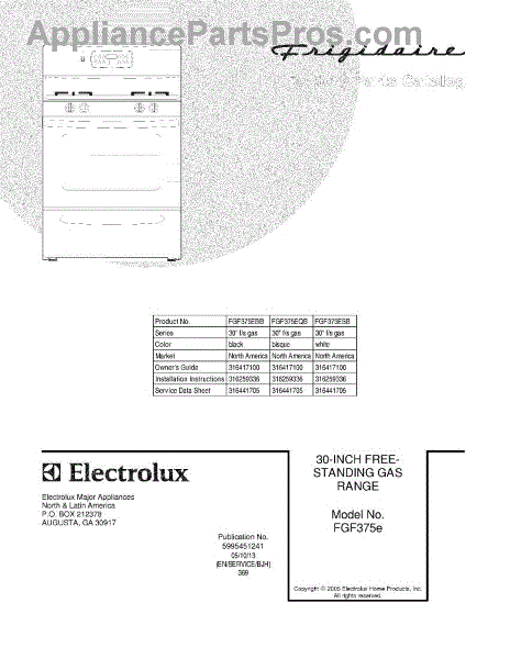 Parts for Frigidaire FGF375EQB: 01 - Cover Parts