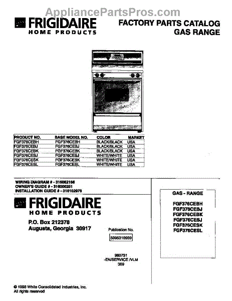 Parts for Frigidaire FGF376CEBK: 01 - Cover Parts