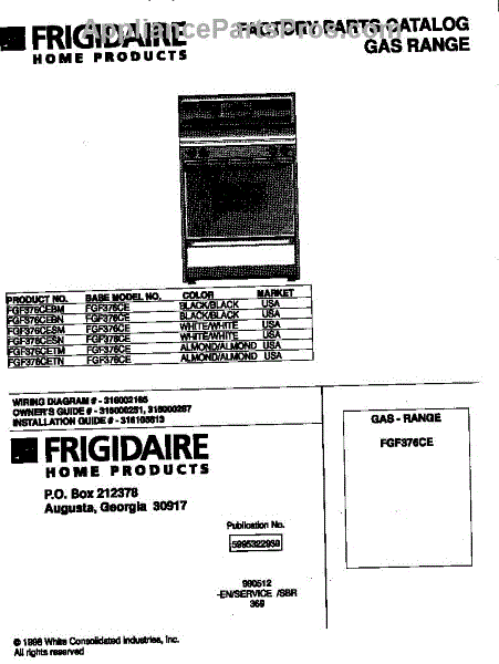Parts for Frigidaire FGF376CEBM: 01 - Cover Parts