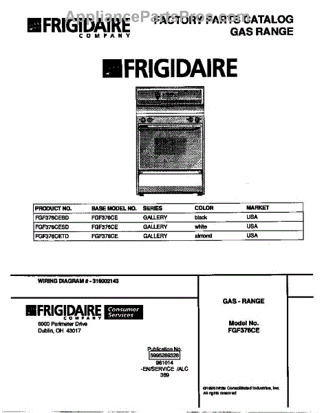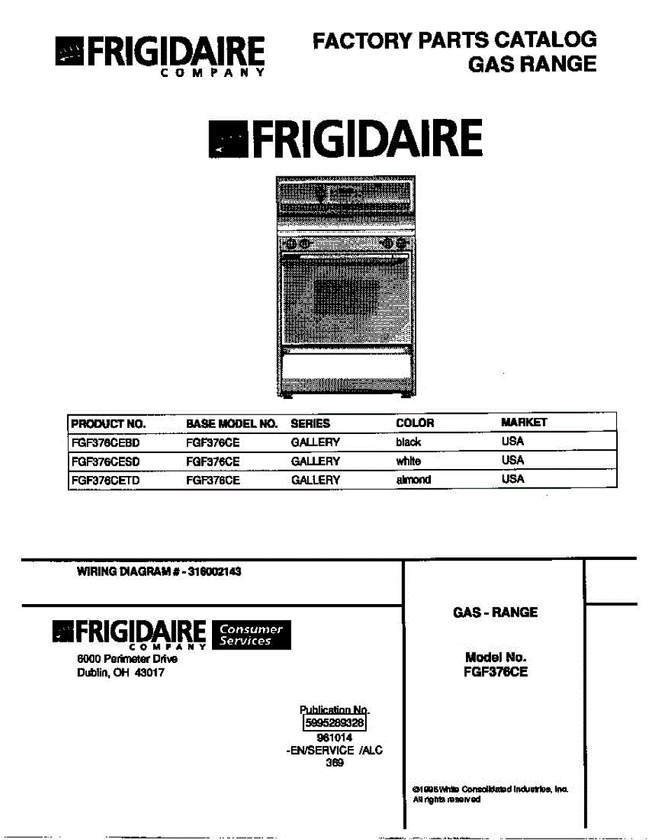 Parts for Frigidaire FGF376CESD: 01 - Cover Parts