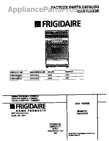 Parts for Frigidaire FGF376CESE: 01 - Cover Parts