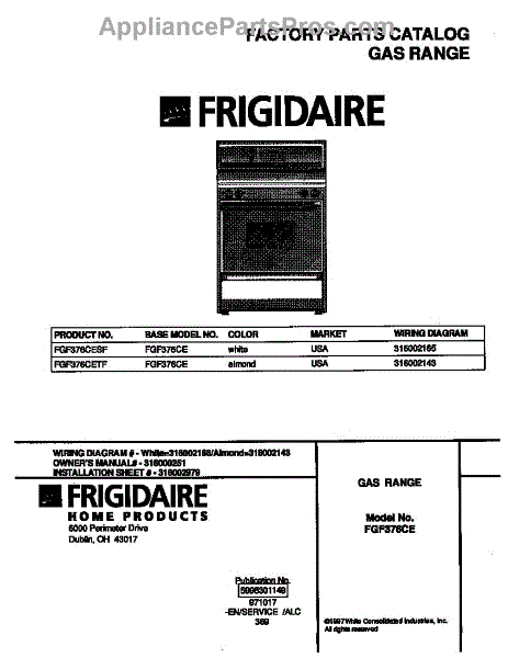 Parts for Frigidaire FGF376CETF: 01 - Cover Parts