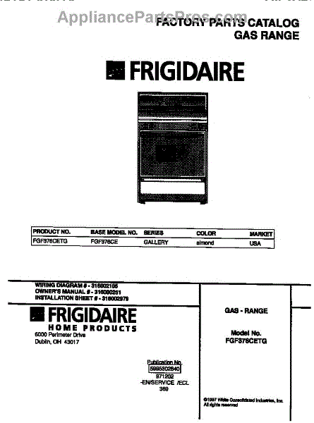Parts for Frigidaire FGF376CETG: 01 - Cover Parts