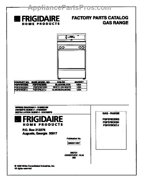 Parts for Frigidaire FGF376CETJ: 01 - Cover Parts