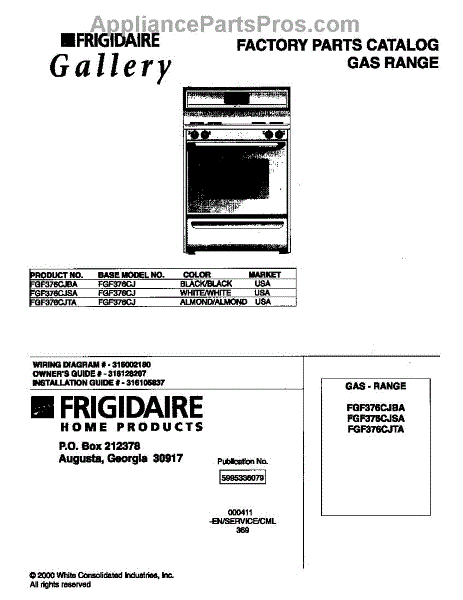 Parts for Frigidaire FGF376CJBA: 01 - Cover Parts