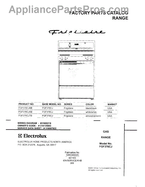 Parts for Frigidaire FGF376CJSB: 01 - Cover Parts