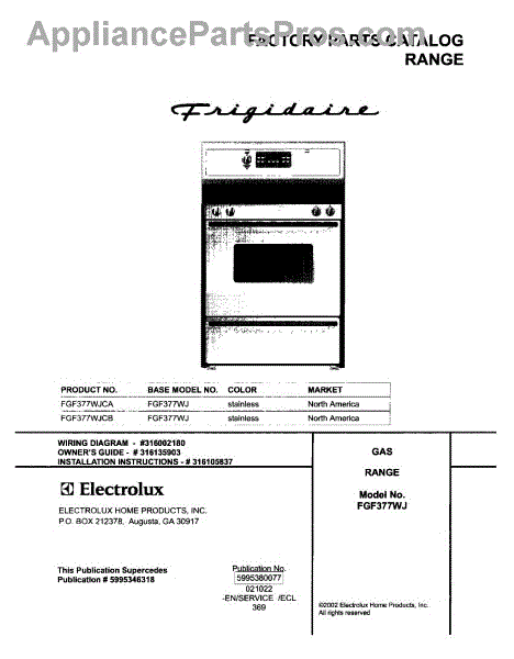 Parts for Frigidaire FGF377WJCB: 01 - Cover Parts