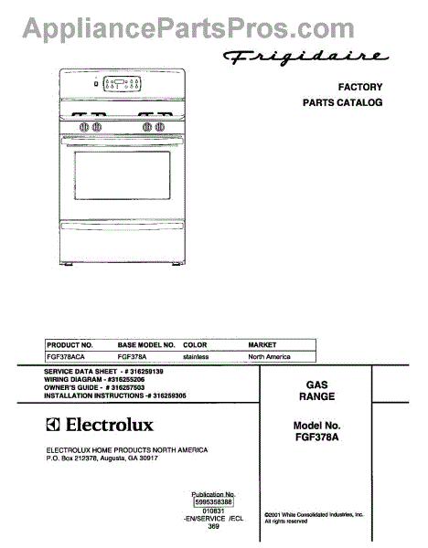 Parts for Frigidaire FGF378ACA: 01 - Cover Parts