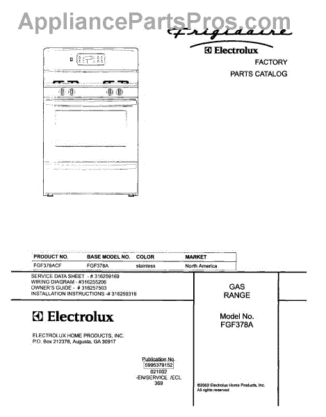 Parts for Frigidaire FGF378ACF: 01 - Cover Parts